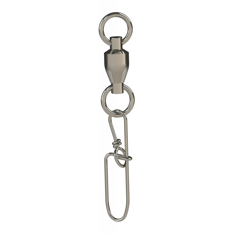 Mořský obratlík s karabinkou Double Insurance v barvě niklu. Obratlík má svařené kroužky k dosažení vyšší pevnosti. Karabinka Double Insurance má dvojitý zámek, takže i při přetížení se sice zdeformuje, ale stále bude držet. Vhodné na mořský rybolov nebo lov sumců. Použijte v kombinaci s Nickel Titanium lankem. K navázání lanka použijte uzel Uni.