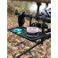 Odkládací stolek s rychlou montáží je univerzální a lze jej použít na jakékoliv kempingové křeslo, lehátko či středovou tyč deštníku na odkládání drobných věcí. Vyroben je z odolného a poddajného materiálu. Rotace držáku 360 stupňů.